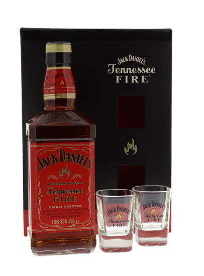 Jack Daniel's Fire + 2 Glazen 35° 0.7L - Giftbox - Promo tot 31/12/25 "online actieprijs"